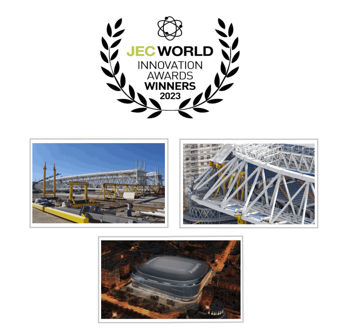 科拉斯旗下的Sky Advanced Materials碳纖,供應(yīng)了皇家馬德里體育場(chǎng)頂?shù)妮p質(zhì)復(fù)合材料橫梁使用的全部碳纖織物,該應(yīng)用榮獲2023JEC復(fù)合材料創(chuàng)新獎(jiǎng)!